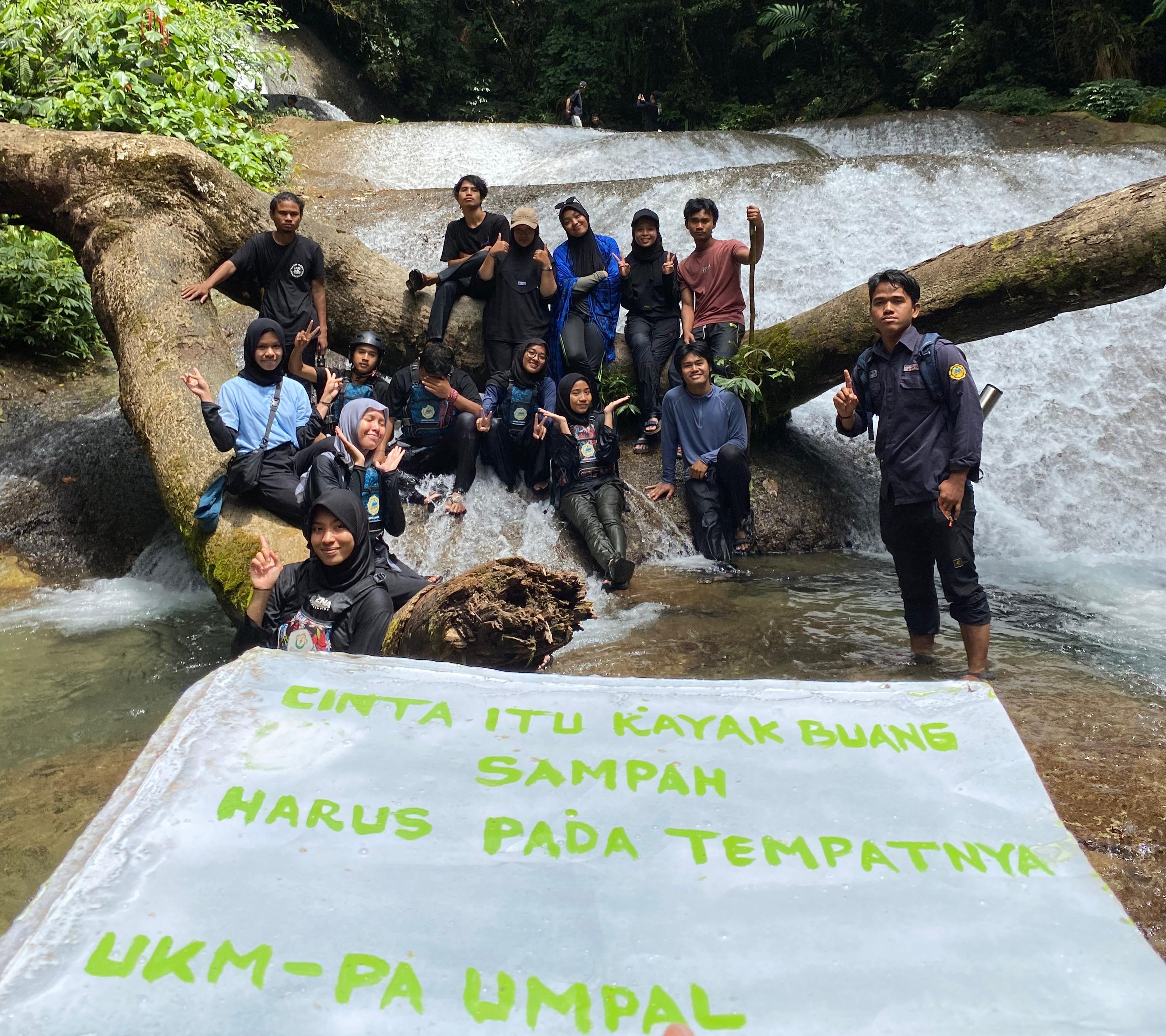 UNIMALNEWS | Aceh Utara - Unit Kegiatan Mahasiswa Pecinta Alam Universitas Malikussaleh (UKM PA UMPAL) melakukan pemasangan papan edukasi pengingat sampah di objek ekowisata Air Terjun Tujuh Bidadari di Kecamatan Geureudong Pasee, Kabupaten Aceh Utara, Minggu (30/6/2025).