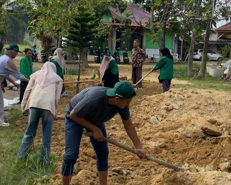 UNIMALNEWS | Aceh Utara – Mahasiswa Kuliah Kerja Nyata Pembelajaran Pemberdayaan Masyarakat (KKN-PPM) kelompok 5 Universitas Malikussaleh melakukan gotong royong di Dayah Al-Azhar Krueng Mane di Gampong Cot Seurani, Kecamatan Muara Batu, Aceh Utara, Sabtu (17/01/2026).