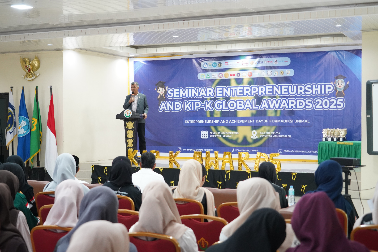 UNIMALNEWS | Bukit Indah - Forum Mahasiswa Bidikmisi (Formadiksi) dan Kartu Indonesia Pintar Kuliah (KIP-K) Universitas Malikussaleh gelar kegiatan seminar entrepreneurship dan KIP-K Global Awards 2025. Kegiatan itu berlangsung di Aula Cut Meutia, Kampus Bukit Indah, Kota Lhokseumawe, Senin ...