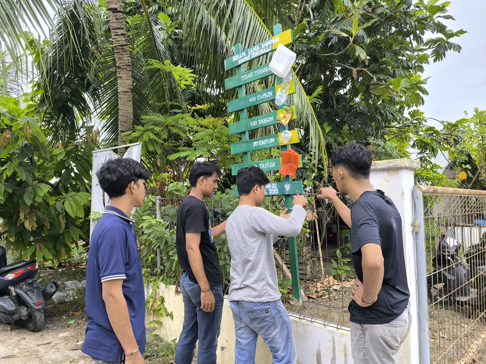 UNIMALNEWS | Lhokseumawe - Untuk mempermudah akses dan meningkatkan literasi navigasi di wilayah pedesaan, mahasiswa Kuliah Kerja Nyata Universitas Malikussaleh kelompok 23 memasang papan nama jalan di Dusun Cot Suwe, Gampong Padang Sakti, pada Rabu (6/8/2025).